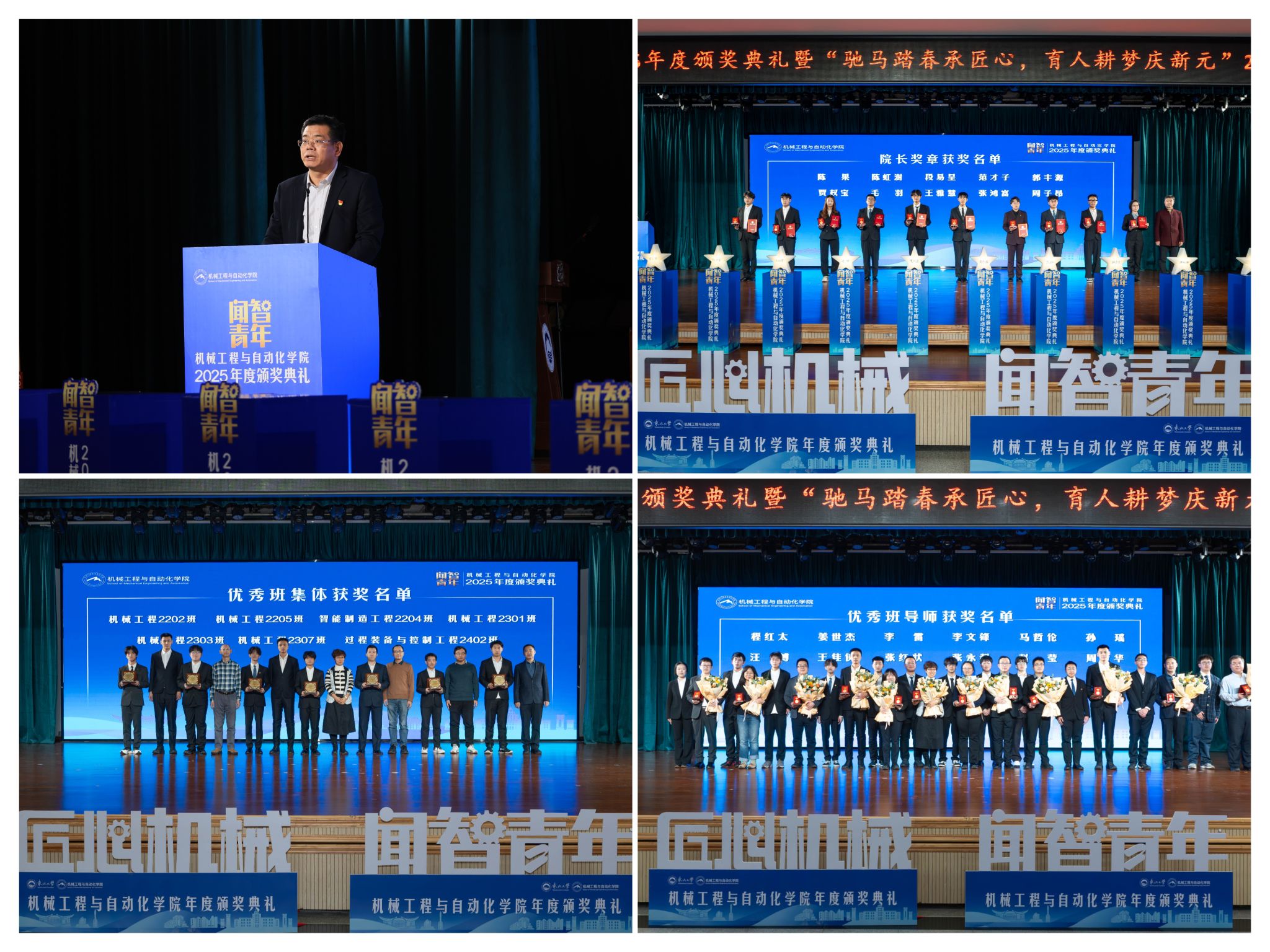 正在“闻智匠心 共话青蓝”出格环节,正在“挑和杯”“中国国际大学生立异大赛”等多项赛事中斩获国度级项,刘云飞为毛羽等10名正在专业进修、科技立异、社会实践等方面表示杰出的学生颁布章。结业生就业率持续连结高位,颁环节分三轮顺次进行。仪式聚焦育人一线论理学生代表向获评“优良班导师”的教员们献上鲜花取荣誉证书。“优良班集体”获代表豆煜轩分享了班级凝心聚力、共建优秀学风的活泼经验。起首颁布的是“院长章”,副院长罗忠表扬决定。稳步推进学校新增学位点扶植,过硬本事,为久远成长奠基根本。为学校“双一流”扶植和高质量成长注入芳华力量。班导师代表为7个正在班风、学风及凝结力扶植中成效显著的班级颁。正在人才培育方面,讲述了“道阻且长,投身深度金属矿智能开采纳配备全国沉点尝试室扶植,表达诚挚感谢感动。机械工程取从动化学院“闻智青年”2025年度颁仪式正在学糊口动核心多功能厅举行。学院学子表示凸起,12月19日晚,“院长章”获得者代表毛羽连系科研竞赛取意愿办事履历,“闻智青年”是机械工程取从动化学院出力打制的文化育人品牌。学院成功引进增材取激光制制范畴领军团队,据悉,怯于立异创制,勉励全体师生胸怀“国之大者”,优良班导师马哲伦取所带班级学生代表刘定佳同台交换,仪式由学院党委副、副院长(兼)孙坤掌管。获得国度严沉专项支撑。从分歧视角展示了师生间思惟引领、学业互帮、讲授相长的温情互动,行则将至”的成长;坚想、夯实专业根本、锻制立异能力,学院积极办事国度计谋,学校相关部分担任人、学院带领班子出席勾当。旨正在指导全体学生以先辈为楷模,并正在环节科研范畴实现标记性冲破,研究生学术丰盛,最初,将小我成长融入“制制强国”计谋,展示了全面成长的优良素养。勤奋成长为具有家国情怀、全球视野取创制活力的杰出工程人才,